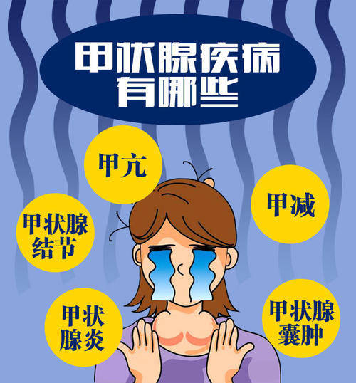 常见疾病包括:甲亢、甲减、甲状腺结节、甲状腺癌等。